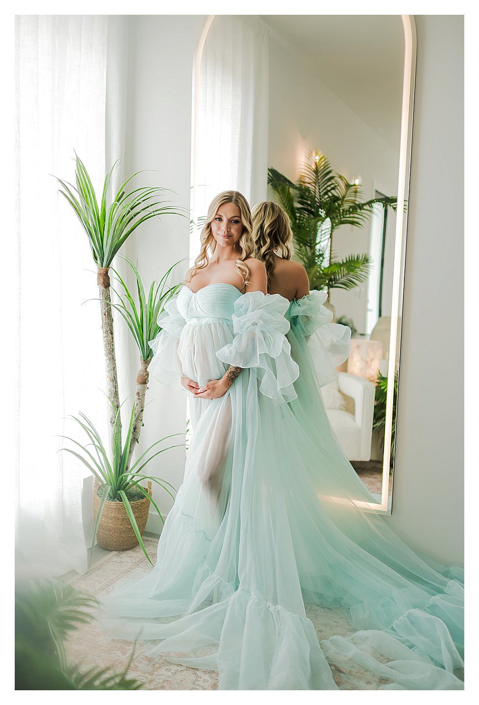 The best time to schedule your maternity session is between 28 and 34 weeks. You’ll have a beautifully rounded belly while still feeling comfortable enough to pose like the queen you are.