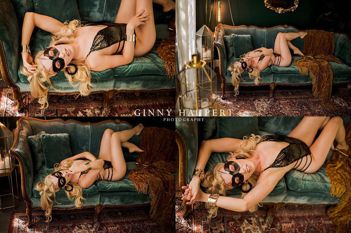 We have the perfect accessories at the studio. Dakota is rocking our gold Honey Birdette Bondage cuffs and fox mask. We love pairing it with a gold whip. Take your shoot up a notch and add these fun props!