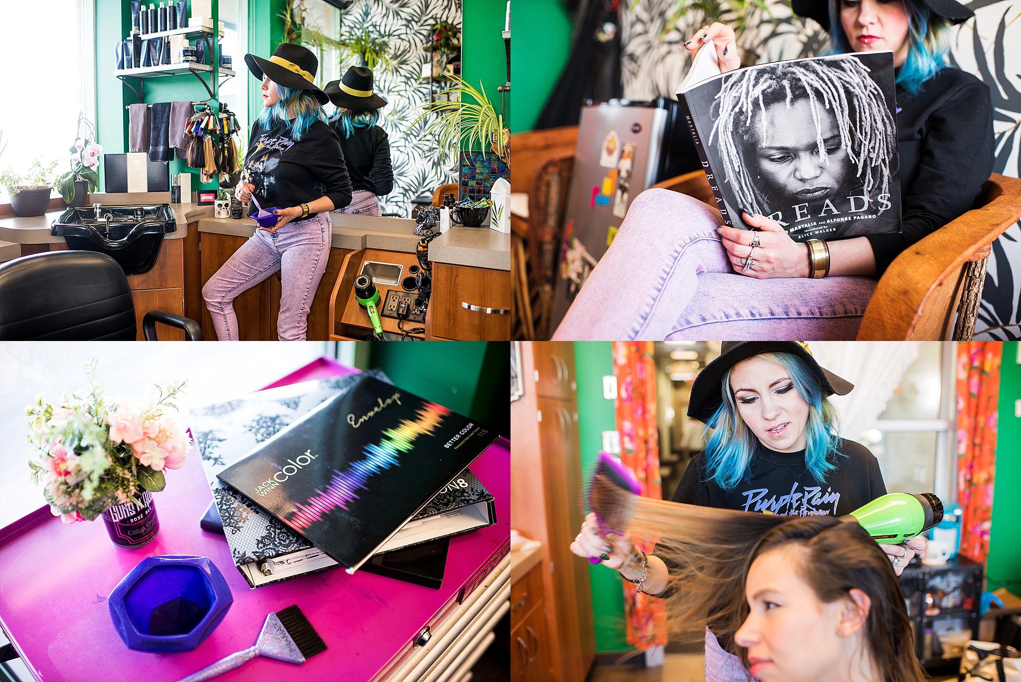 A. I come to you and your typical work environment whether its your office or your storefront. I want to photograph you in your element. Your session includes headshots, detail shots, and action shots. What are action shots? For example, my girl Nyki is a rocking hair stylist. We took shots of her mixing color, blow drying, talking to her clients, and styling. Think of it as behind the scenes shots. Its what your clients can expect to see you doing. This makes you more personable and easier to connect with your ideal clients.