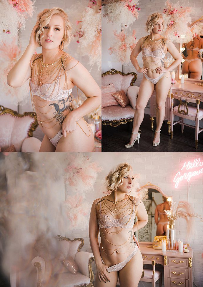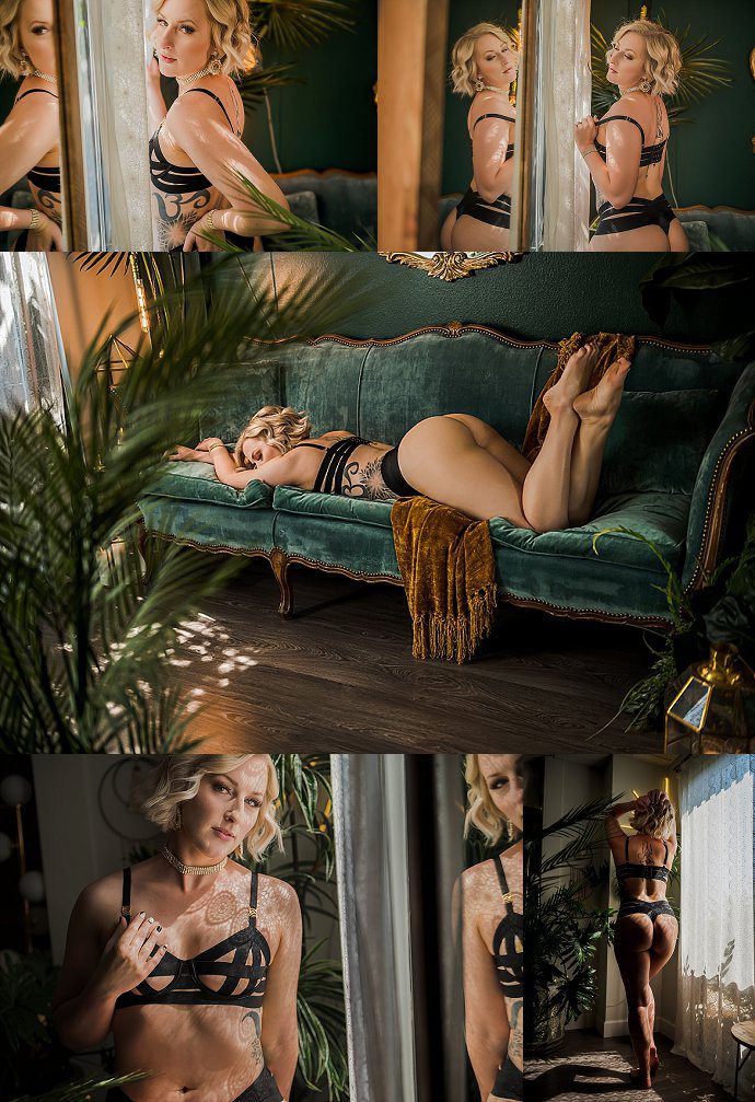 As a Denver boudoir photographer, I love that with every client we get something a little different. Creating new styles, moods, and sets is so much fun. For Ms. L’s Denver Boudoir Shoot we started soft and sweet and finished with a little sass. I don’t want every photo to look the same so we really try to mix things up. If you have a vision for your shoot, I am happy to sit down with you and help create the boudoir shoot of your dreams. We start all shoots with professional hair and makeup so you can sit back and relax. I will go over all your outfits with you and start creating the vision.