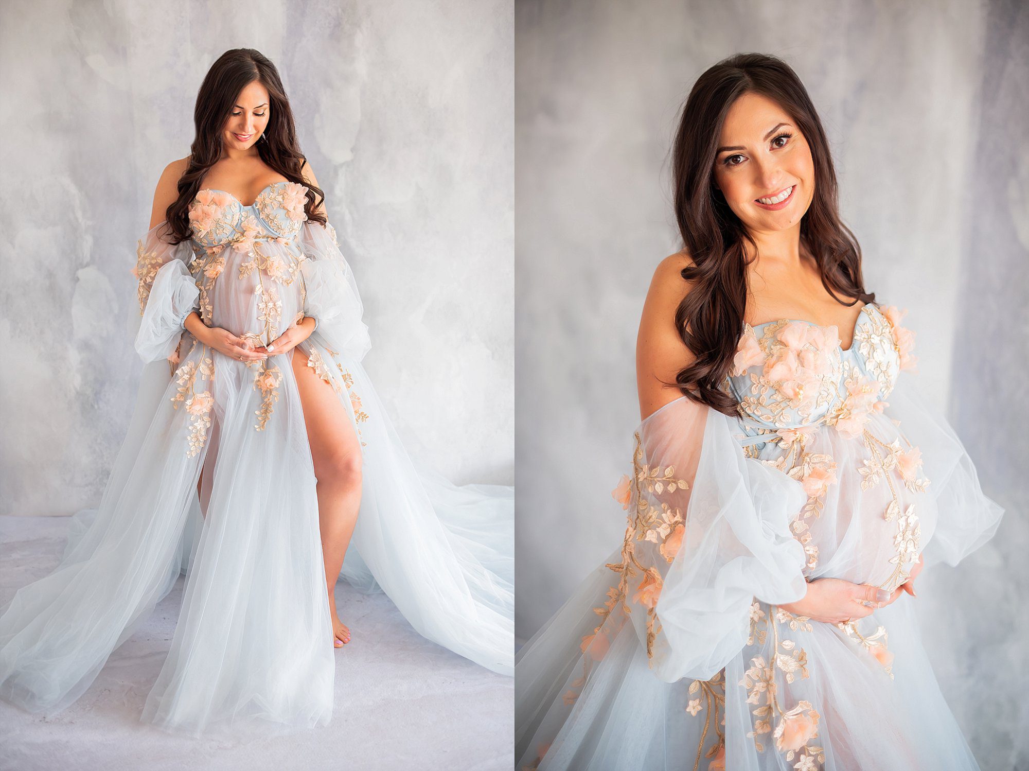 When you book with me, Ginny, you get access to over 300 maternity gowns. This extensive wardrobe ensures you’ll find the perfect outfit for your session. Additionally, having a variety of gowns means you can have multiple looks during one session. This adds depth and variety to your photos, making them even more special.