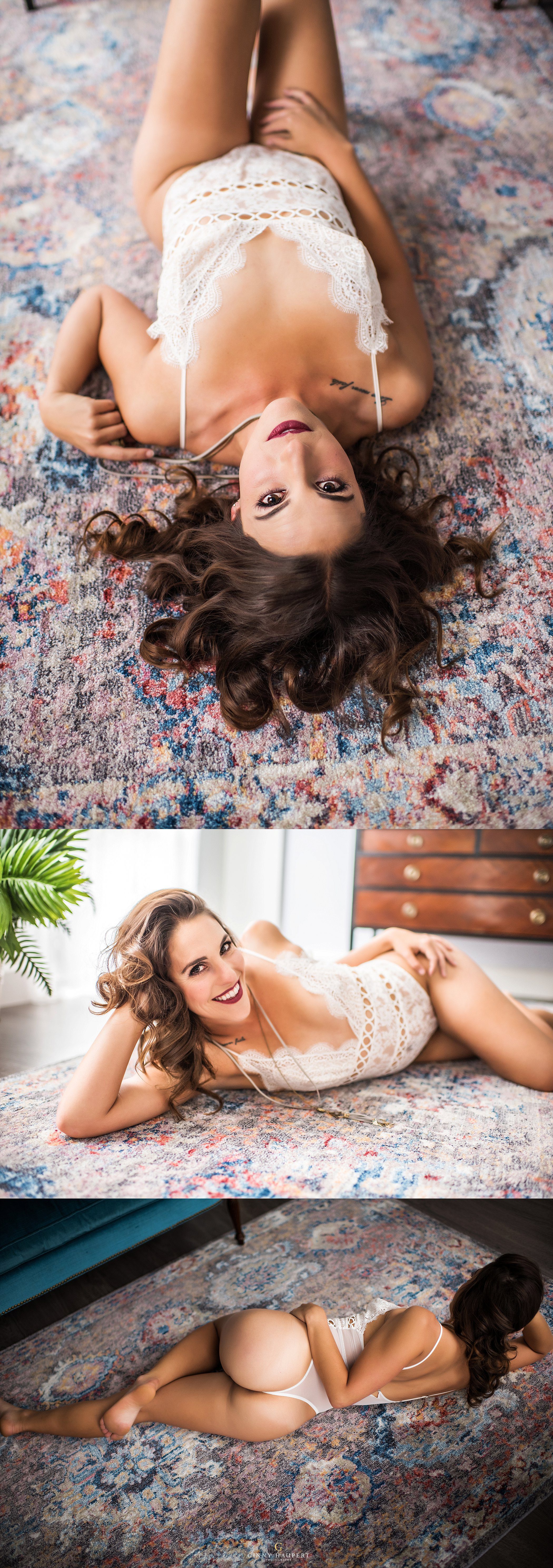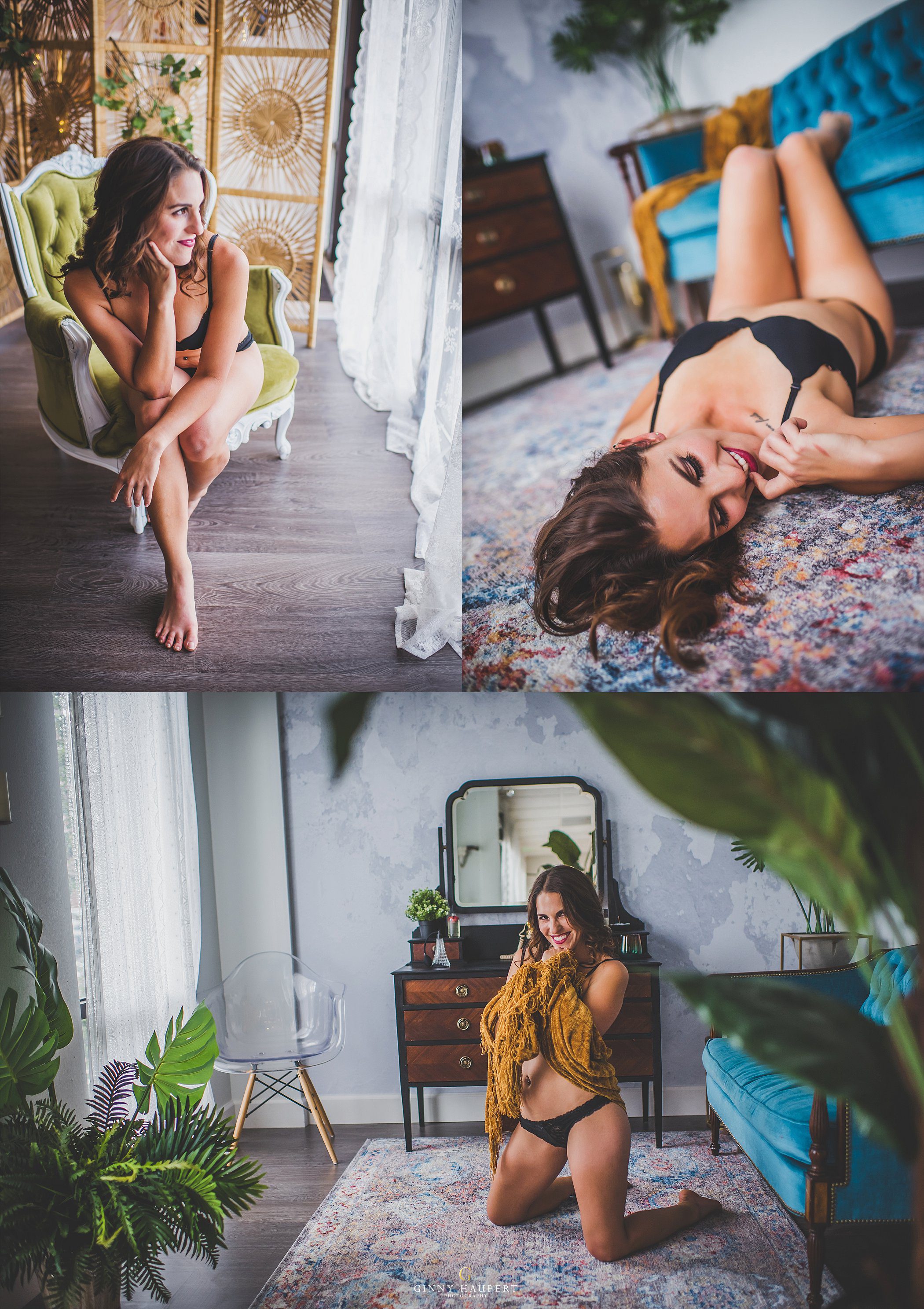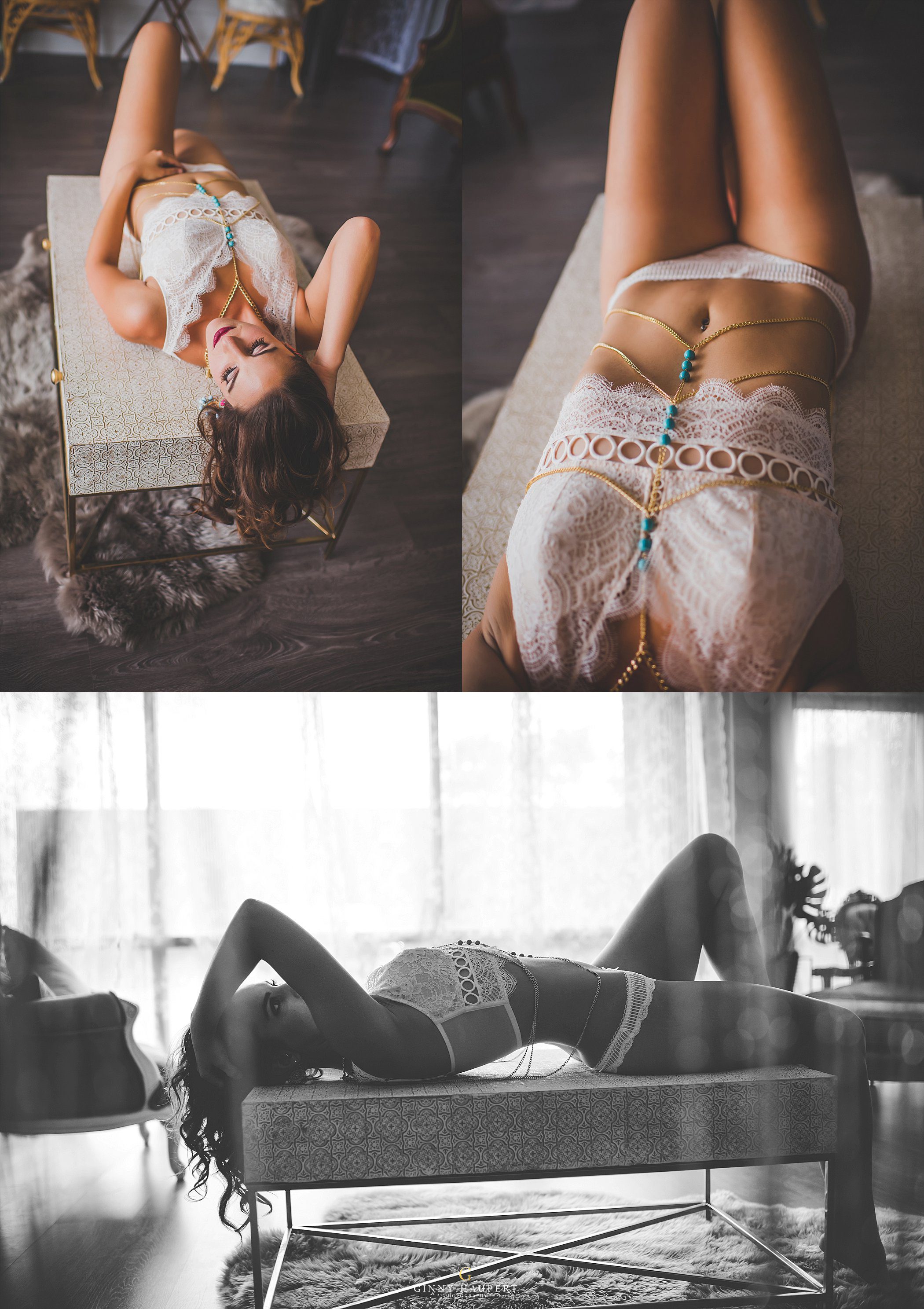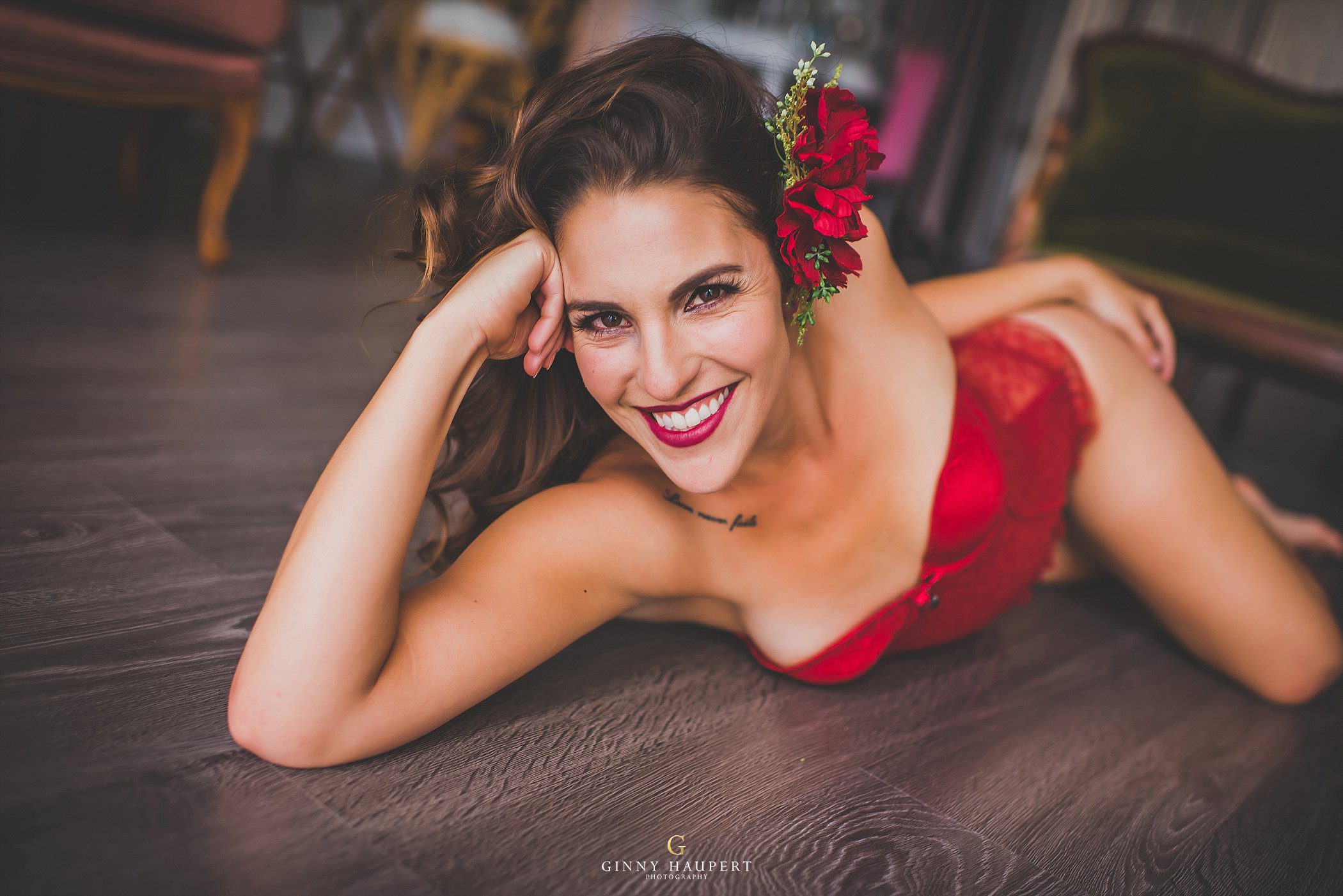 This little beauty came into the Denver Boudoir Studio to create a gift for her soon to be new husband. She brought such an amazing variety of clothing options. I adore her fiancé’s soccer jersey she brought to add a little something personal to the shoot. Her lace lingerie from Victoria Secret was stunning on her and reminded me of a boho bridal look. The black and red options were a simple but sultry addition. The best accessory she brought was that infectious smile and laugh because we were having so much fun. Even though we go for some seductive looks, you have to break it up with some good laughs in between.