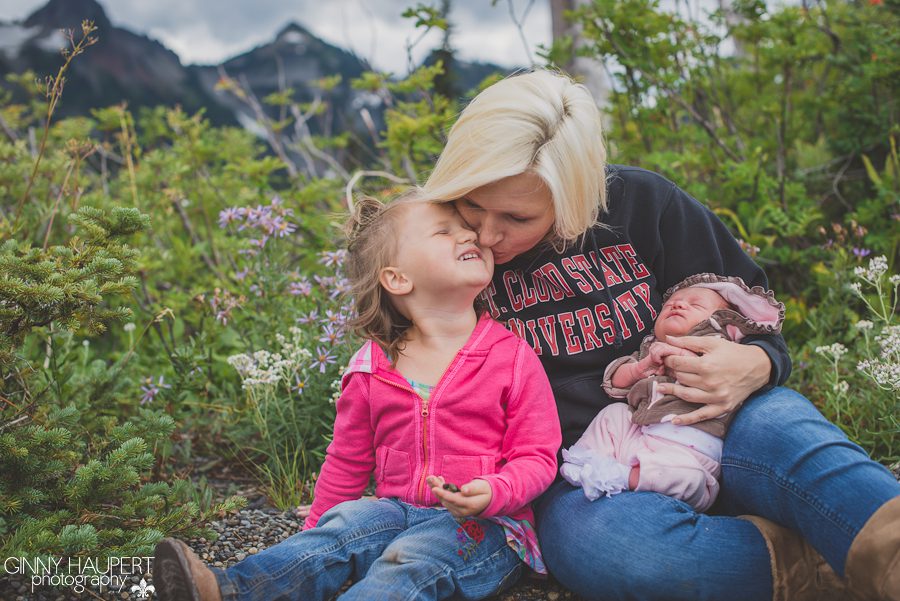 It wasn’t long after I had Ellie that we would begin the process of packing up our house and moving on from Washington. Tony was going to train for a new career in the USAF at Vandenberg AFB in CA. I was taking the girls and heading back to MN to be with family for 4 months and then we would all be moving to Buckley AFB, CO. We thought we better take advantage of living so close to Mt. Rainier since we may never see it again. Typical Washington fashion, it poured after we got to the top but it was still so beautiful. The wildflowers up there are so pretty, the evergreens are so bountiful, you just feel majestic when visiting there.